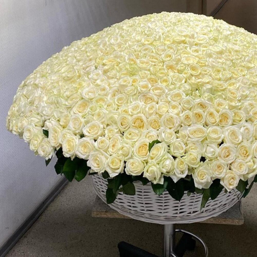 1001 белая роза в корзине «Чистота» в Ростове-на-Дону