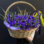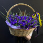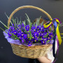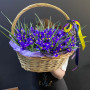 101 синий ирис в плетенной корзине в Ростове-на-Дону