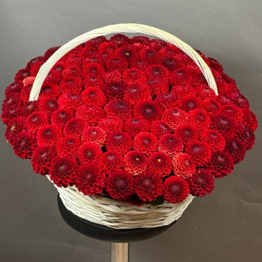 Композиция из 101 красной георгины в корзине в Ростове-на-Дону