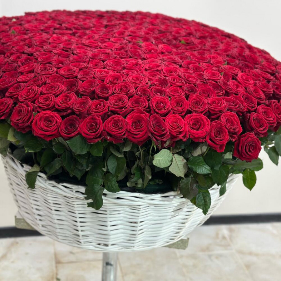 Букет из 501 красной розы в белой корзине в Ростове-на-Дону